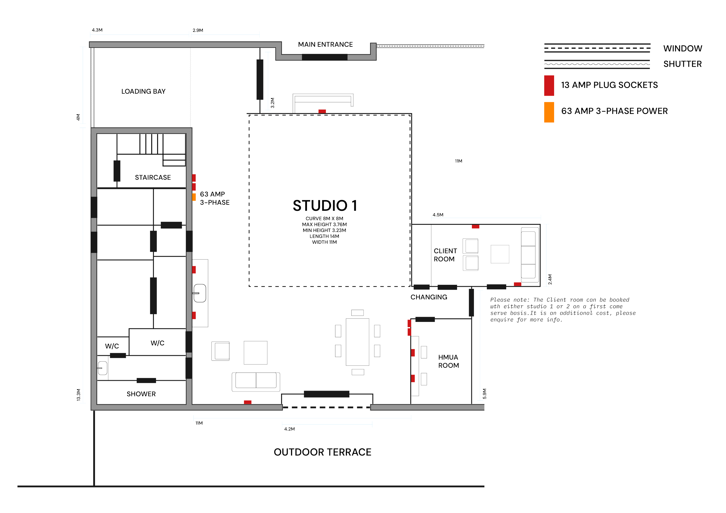 • SEATING AREA PLUS OPTIONAL CLIENT / GREEN ROOM ACCESS