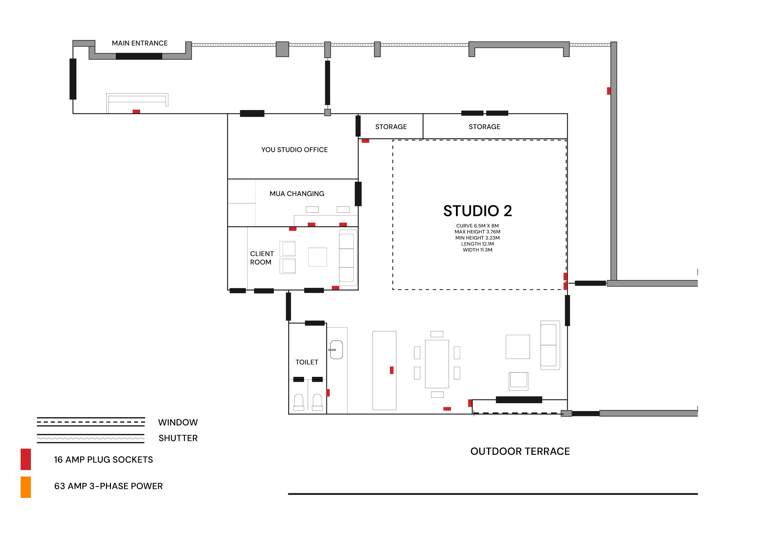 STUDIO 2 IS ADAPTABLE AND WELL-EQUIPPED. WITH ITS COVE, TERRACE, FACILITIES AND ACCESS TO STUDIO 1, IT IS ONE OF THE MOST VERSATILE OPTIONS FOR A LONDON PHOTOGRAPHY STUDIO. DESIGNED TO DELIVER BOTH TECHNICAL PRECISION AND A PREMIUM CLIENT EXPERIENCE.